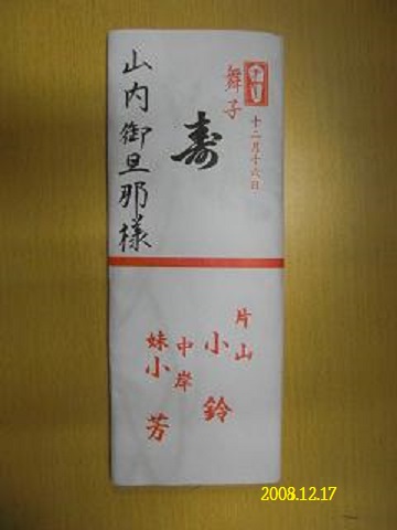 これは5年前の「小芳」さんという舞妓が店出しして頂いた